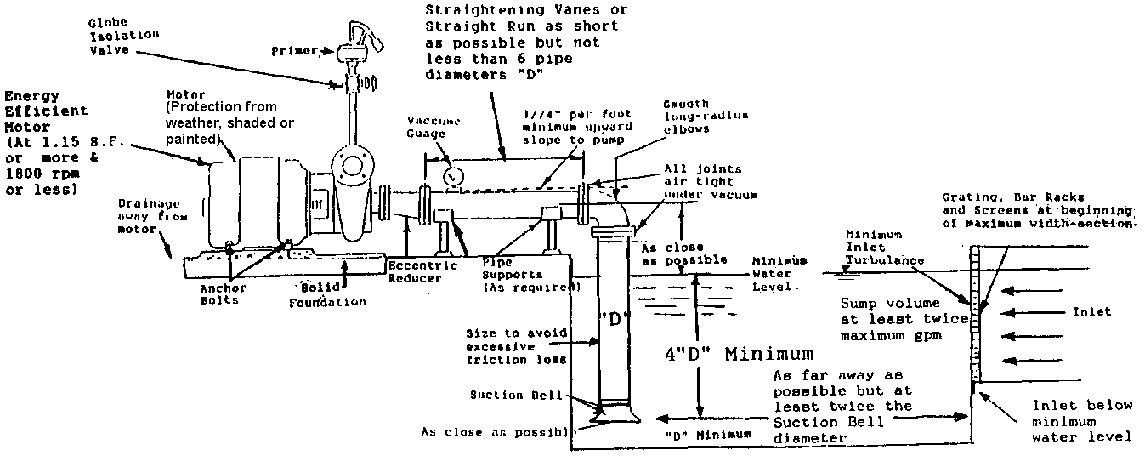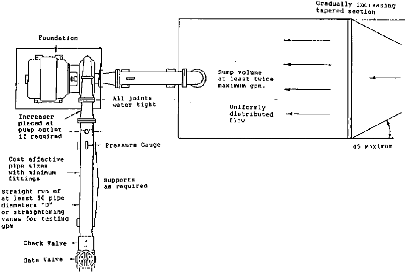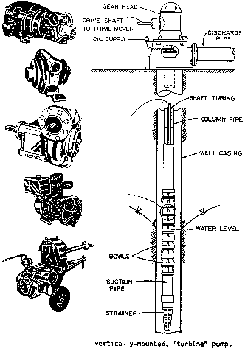 The Peace Corps Volunteers working with irrigation need not be experts on pumps. They must know, however, the fundamentals of design, installation, and maintenance. This will enable them to provide the basic specifications to the supplier and supervise the installation. A pump supplier can provide the correct pump and accessories if provided with information on the flow, head required, the power source to be used, and the configuration for installation. The technicians (irrigation specialist) should in all cases demand that the pump curves and maintenance instructions come with the pump. Often, the pumps in stock are not the correct ones, and the Volunteer should not settle for pumps that are extremely oversized or undersized or which do not operate with good efficiencies.