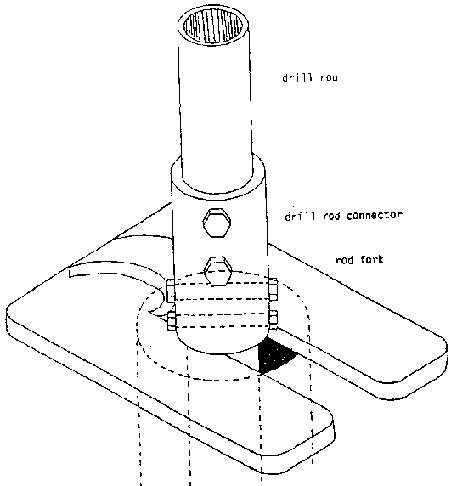 - When placed around a drill rod or auger, the fork acts as a support for the drilling tools. In this manner, rods and augers may be added or removed from the drill string with little danger of dropping sections down the bore hole.