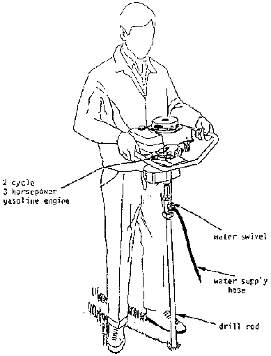 - One person may operate this equipment to depths of 50 feet (15 m). Greater depths may be attained when the engine and drill rod are suspended from a tripod.