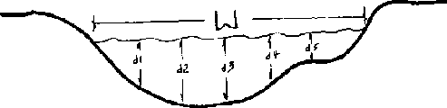 Determining stream flow by the float method is very simple. Select a section where the width and depth of the stream are fairly uniform along a fair distance. Measure the cross sectional area as shown in Figure 8-1.