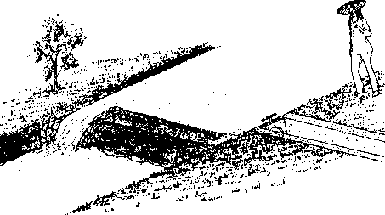 Dams may be built of wood, posts and brush, the technique used by beavers. They may be built of earth with some sort of a spillway that will not erode too rapidly to carry excess water, such as a rock-lined channel at one end of the dam, Figure 8-7.
