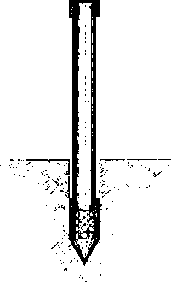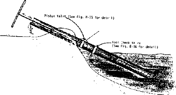 Small diameter wells, 1 m to 6 m, and located in deep alluvial type soils without stones may be driven. To "drive" a well, attach a sharp point to one end of a pipe that has a perforated screen above the point to let water flow into the pipe. Cover the other end of the pipe with a cap to keep from damaging it and the threads as it is driven into the ground, Figure 8-19.
