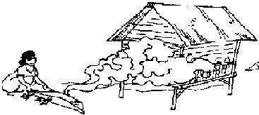 Burn dried leaves. Cover the fire with fresh banana leaves to make a lot of smoke.