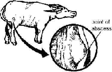 Abscesses may have various causes, including infected wounds, irritants on the skin and internal disease. They may also be caused by using dirty instruments, syringes or needles. If the animal has fever as well as abscesses, it may have an infectious disease (see Infectious diseases in species-specific manuals). Infected matter from an abscess which falls on open wounds may cause more abscesses, severe pain and swelling.