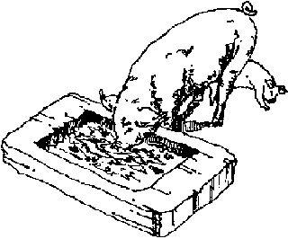 are shaken out of the box directly into the pig trough. A split bamboo duct can