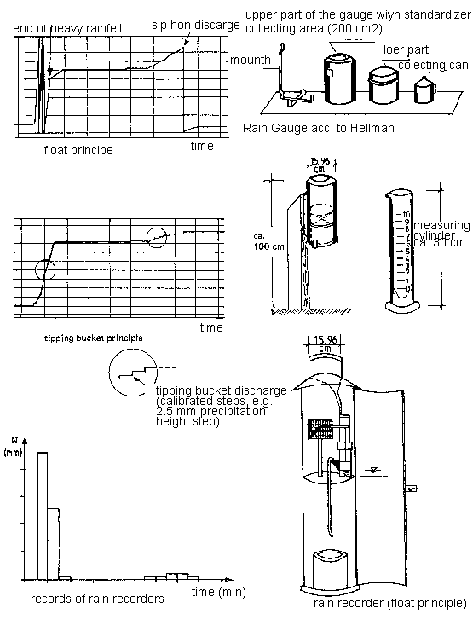 The quality of the data from precipitation records is dependent upon the maintenance of the instruments, the ability of the observation staff to read the data correctly, and, above all, upon the place of installation. If possible, the rain gauge should be installed in a place where it is possible to record precipitations which are more or less representative of a certain part of the catchment area.