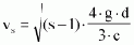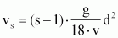 with d = particle diameter, s = density of particles due to density of water (2.6 to 2.7 for sand), n = kinematic viscosity of water (0.0132 cm²/s at 10°C in clean water), g = acceleration due to gravity = 9.81 cm/s2.