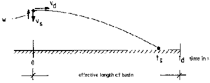 The water particles entering and the suspended matter particles transported by them horizontally at an even velocity must reach the end of the basin only when the sinking process is completed, i.e. the sinking time ts must be shorter than the time of passage (translation time) td through- the basin (Fig. 45).