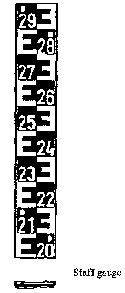 Easy construction of a limit value gauge which always indicates the highest water level after the passage of the flood waves; construction of the gauge by fixing small tins, etc., at definite intervals to a staff.