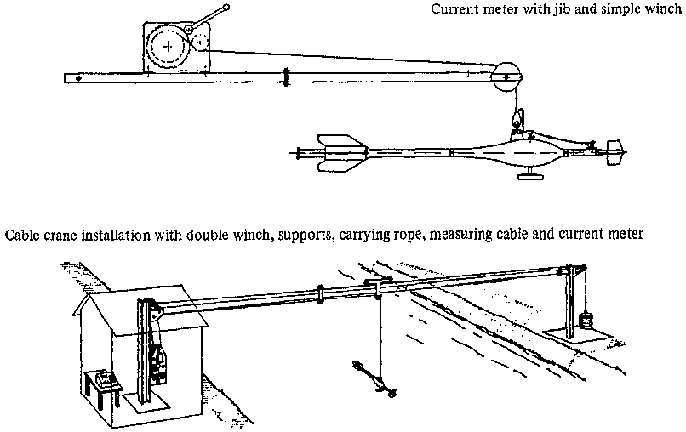 - Complete equipment incl. current meter, float, simple winch (cf: 3.3), carrying rope, counter, cable, etc., between about DM 13000 and DM 16000.