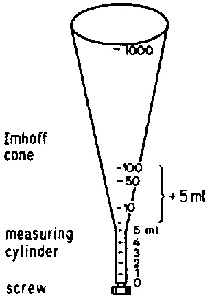 - record the volume of settled material after 15 min. 30 min. 1, 2, 4, 8 and 24 hours and enter the results in the record sheet