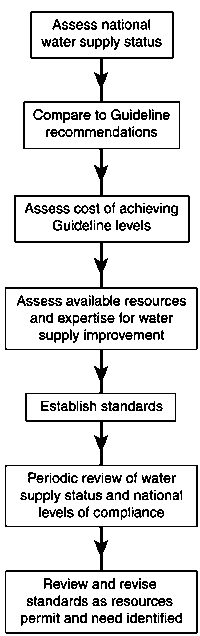 The establishment of drinking-water quality standards must follow a very careful process in which the health risk is considered alongside other factors, such as technical and economic feasibility. When establishing national standards, consideration must be given to the practical measures that will need to be taken with respect to finding new sources of water supply, instituting certain types of treatment, and providing for adequate surveillance and enforcement.