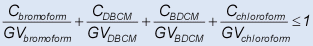 In the 1993 WHO Guidelines, individual GV have been recommended for the four trihalomethanes. With an underlying assumption that the THMs may exert potential toxic effects through similar biological mechanisms, authorities may want to establish standards for total THMs that would account for possible additive effects and not simply add up the guideline values for the individual compounds in order to arrive at a standard. Instead, the following approach is recommended: