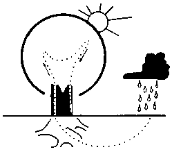 The food (carbohydrate) is carried by the inner bark (sap-wood) to all parts of the tree. Trees grow each season by adding a new layer each time onto the old layer. The lines left behind during the seasons growth are called annual or growth rings.