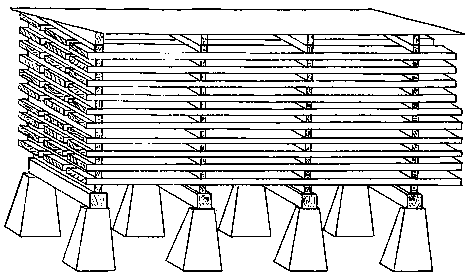 Each layer of boards is separated by spacing strips set from 600 to 1200 mm apart to enable fresh air to enter from the side. The spacing strips have to be set in a vertical row.