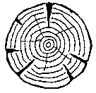 Owing to the fact that the outer surface of a log are in contact with the air they dry more quickly, and therefore shrink before the inner layers of the wood. This cause splitting or surface cracks. It is therefore advisable to "break down" the log into commercial sizes as soon as possible after felling.