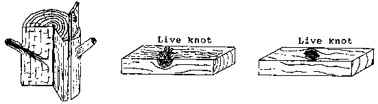 - Knots can be caused by a branch or limb being cut through the process of sawing up the log. Knots are classified in two groups: live knot and dead knot. Live knot is left by a branch when the tree is felled.
