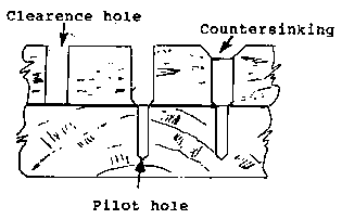 c) Fitting screws: - Softwood: It is necessary to bore a clearance hole for the shank of the screw through the top piece of wood. Countersinking will also be required for a countersunk head screw.