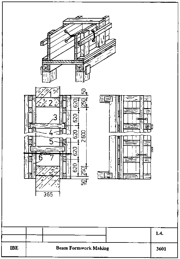 This example serves to practise making of a beam formwork for a brickwork wall coping to given sizes.