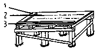 The sheeting bottom can be placed on a pedestal support (a trestle formed by a waler connected with two columns by means of cleats) or on a round timber column also supporting a waler with cleat connection. In the latter case, the round timber column is located under the centre of the beam. By diagonal board bracing the round timber column and the waler above it, a composite triangle is formed. The side sheeting is erected on the sheeting bottom and held by a thrust-board.