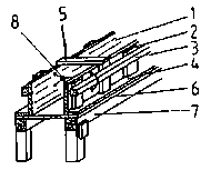 1 side panel, 2 cover strap, 3 waler, 4 thrust-board, 5 stull, 6 formwork bottom, 7 trestle, 8 tie wire