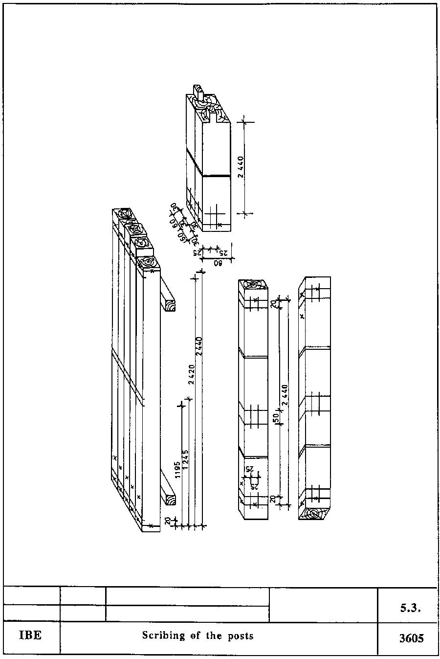 The posts for the partition wall shown in the detailed drawing are to be scribed.