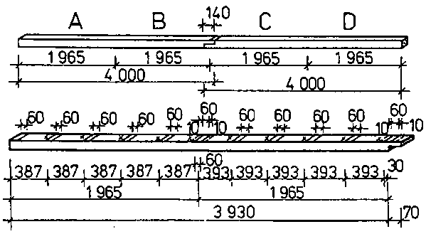 The pitch size to be scribed on the runners for the posts to be mortised amounts to 493.75 mm from jointing to jointing.