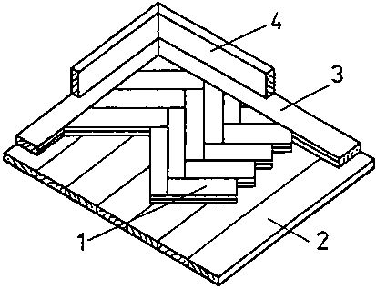 1 parquetry-fillet, 2 planed boarding, 3 frieze strip, 4 skirting board