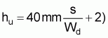 For stairs with sawn-out or attached rise triangles the string bottom must have a sufficient height. The height of the string bottom is calculated by means of the following formula:
