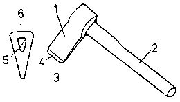 1 cutter, 2 handle, 3 spike, 4 bit, 5 cutting edge, 6 bevel