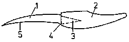 1 blade, 2 handle, 3 spike, 4 bit, 5 cutting edge