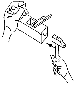 For sharpening of the plane iron, it is removed from the plane stock by means of blows of a hammer on the impact button.