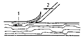 1 direction of wood grains, 2 working direction