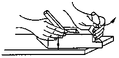 When planing narrow faces of cross-cut wood (sectional area) the plane must be moved only up to the centre of the face. The thickness of the shavings to be cut is dependent on the plane iron's excess length over the face.