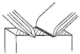 Inclined narrow cut faces are worked only in the direction of the ascending wood grain.