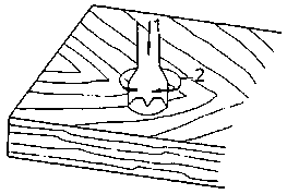- When boring through holes it is to be made sure that no wood fibres are torn off at the bottom side of the workpiece. This can be prevented in two different ways: