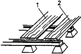 Unedged-sawn boards, arranged ace. to their origin of trunks, are piled up in blocks using pile strips. The width of the bottom board must be one third of the trunk diameter. Neighbouring blocks are connected with common pile strips.