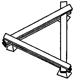 Edged boards or squared timbers are erected with their gross-grained ends standing on the ground of the pile area. They are supported by a frame in a shear-type arrangement.