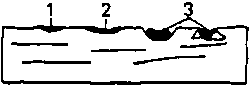 board with filled pores 1 well filled, 2 incompletely filled, 3 incompletely