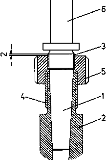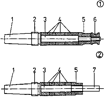1 morse taper, 2 spindle neck, 3 differential thread (cutter arbor), 4 differential thread (spindle neck), 5 differential nut, 6 cutter arbor shaft
