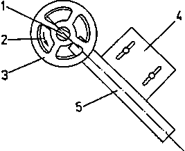 1 cutter arbor, 2 tool, 3 guard spacer, 4 stop board, 5 workpiece