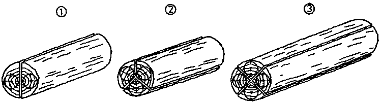 Thick trunks are split once, thrice or four times and the grain ends protected from too rapid drying. This prevents to a marked degree the emergence of drying fissures.