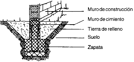 Un cimiento lineal o zapata es construido como sigue: