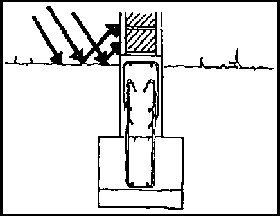La absorción del calor solar puede ser enormemente reducida mediante superficies de muro reflectante. La tierra adyacente a la edificación debe estar sombreada o tener alguna vegetación que impida la reflexión hacia los muros, pero no debe obstruirse la emisión del calor durante las noches.