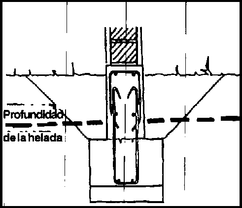 En regiones de la sierra, donde las temperaturas pueden caer por debajo de 0°C, el agua en la tierra se puede congelar y expandirse, dañando el cimiento y consecuentemente toda la edificación. Este problema, llamado levantamiento de congelación, ocurre principalmente en tierras limosas. El problema es evitado colocando las zapatas dedujo de la profundidad de la helada, que puede ser de 50 a 100 cm., o más abajo en climas más fríos.