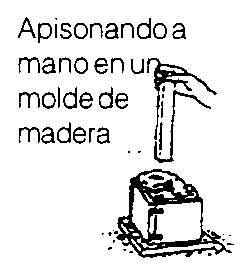 Apisonando a mano en un molde de madera