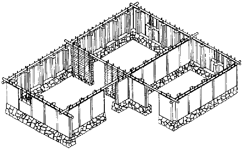 Revoque: después que el relleno ha secado durante una semana se revoca con barro y se pinta con cal.