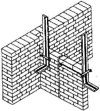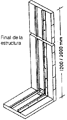 Con un número reducido de estructuras terminales se elimina el usual, y largo proceso de alineamiento vertical y horizontal del muro. Cada estructura-terminal esta conformado por dos tablas de madera unidas en ángulo recto por un marco de acero soldado. El ancho de las tablas corresponde al espesor del muro, o sea el ancho de medio, uno o uno y medio ladrillo