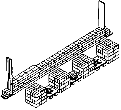 Se obtiene más eficiencia, mejorando las disposición de la obra. La principal idea es la de colocar pilas de ladrillo y tablero de mortero en forma alternada y paralela al muro en construcción, a una distancia de 50 a 60 cm, para permitir el movimiento de los albañiles. Los ladrillos son colocados de canto, para mayor facilidad de los albañiles. El mortero es ubicado sobre tableros, sustituyendo las tradicionales bateas. Ladrillos y mortero son suministrados continuamente desde el otro lado por ayudantes.