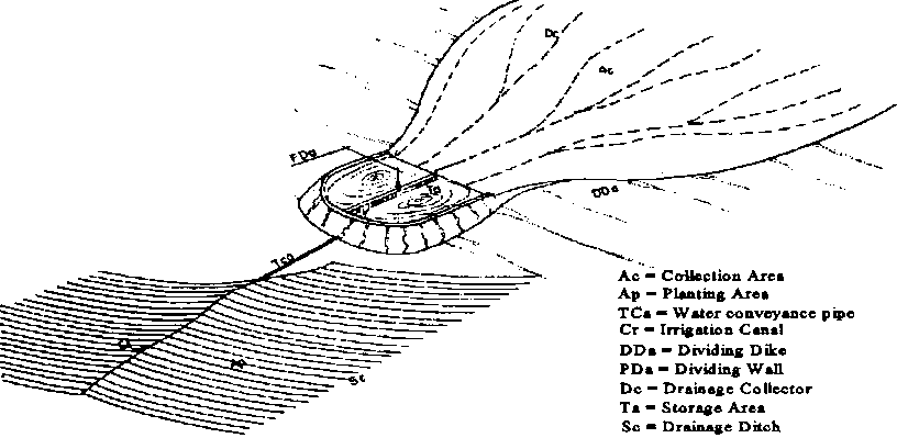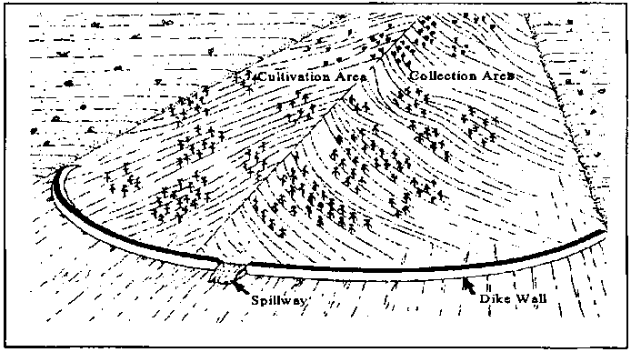 The collection area should be highly impermeable to reduce infiltration losses, and the impoundment should be provided with an overflow device to avoid flooding of adjacent lands during heavy rains. A sedimentation basin at the inlet of the impoundment is also recommended.